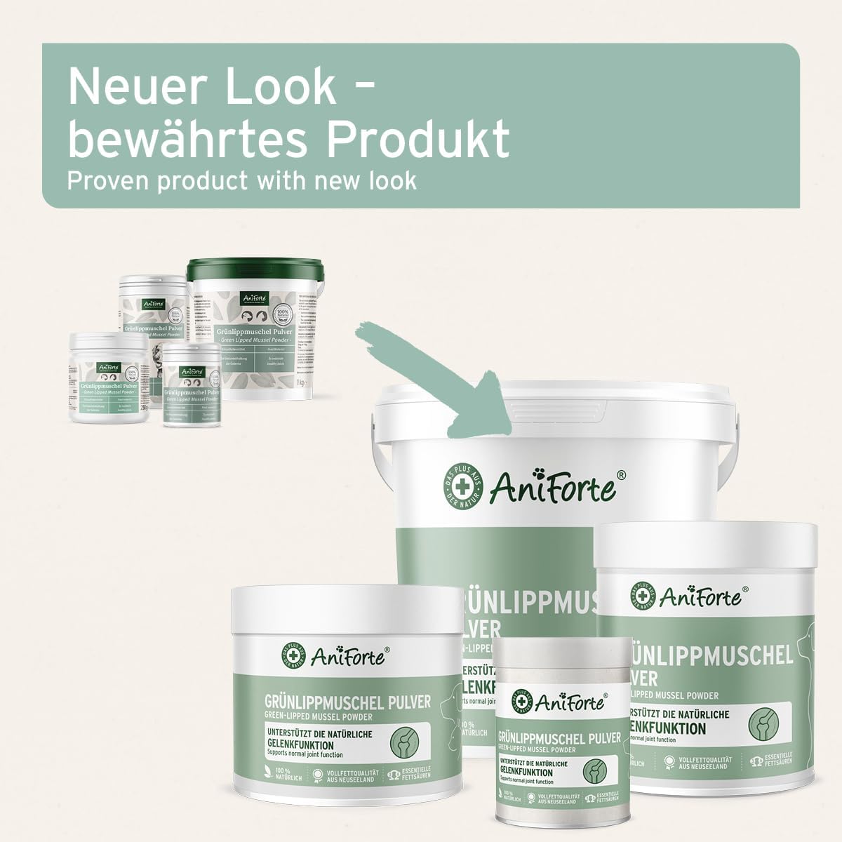 Unser AniForte® Grünlippmuschelpulver ist ein hochwertiges Ergänzungsfuttermittel für Hunde und Katzen zur täglichen Ernährung. Der hohe Gehalt an Glykosaminoglykanen trägt dazu bei, dass das nicht-entfettete Grünlippmuschelpulver Hund und Katze in der normalen Gelenkfunktion und Agilität unterstützt.