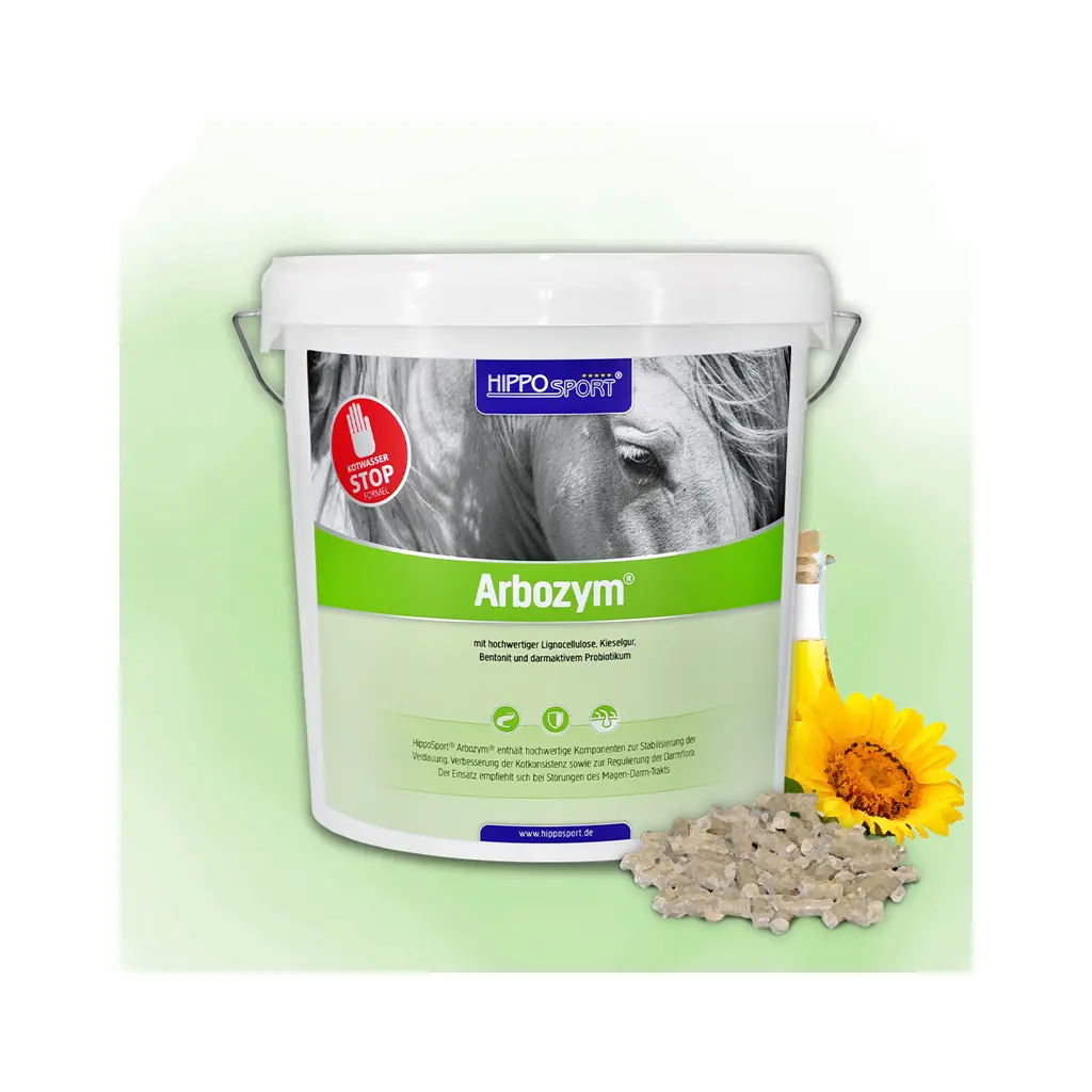 HIPPOSPORT ARBOZYM PELLET ist ein hochwertiges Ergänzungsfutter zur Unterstützung des gesamten Magen‑Darm‑Trakts. Die speziell abgestimmte Kombination aus Lignocellulose, Bentonit, Kieselgur und lebenden Hefekulturen stabilisiert die Darmflora, fördert die Nährstoffaufnahme und hilft deinem Pferd, Verdauungsstress besser zu bewältigen. Ideal bei Kotwasser, Futterumstellungen, Stress, Fellwechsel oder nach Wurmkuren.