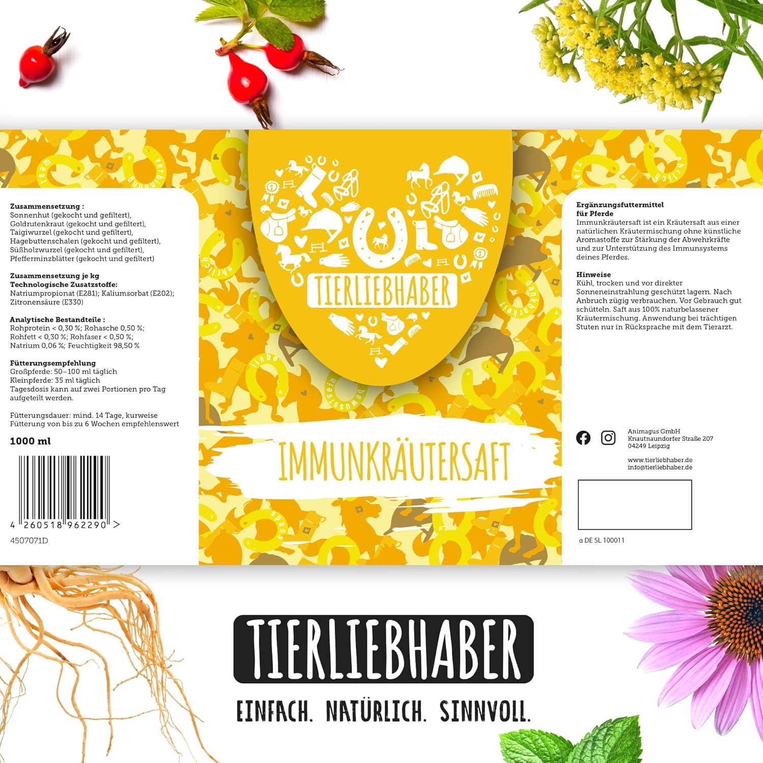 Immunkräutersaft für Pferde – Tierliebhaber | 1 L