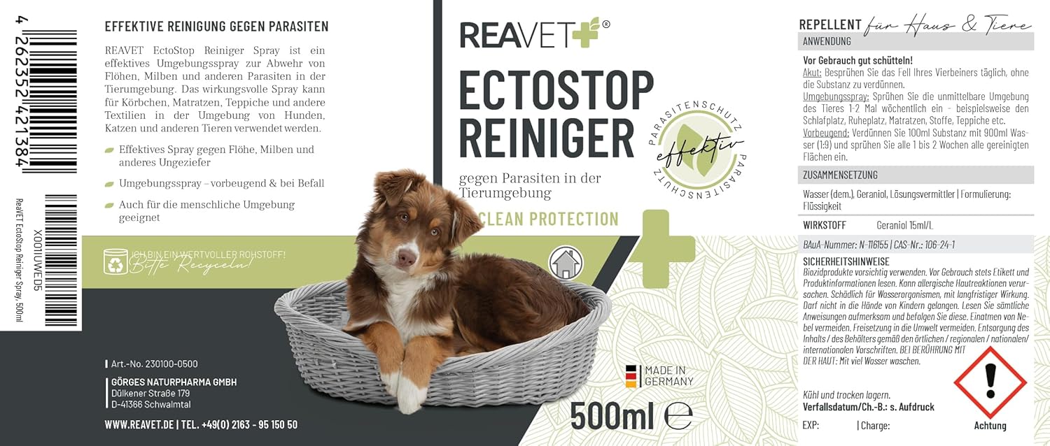 ReaVET EctoStop Reiniger 500ml – Natürliche Umgebungsreinigung gegen Parasiten