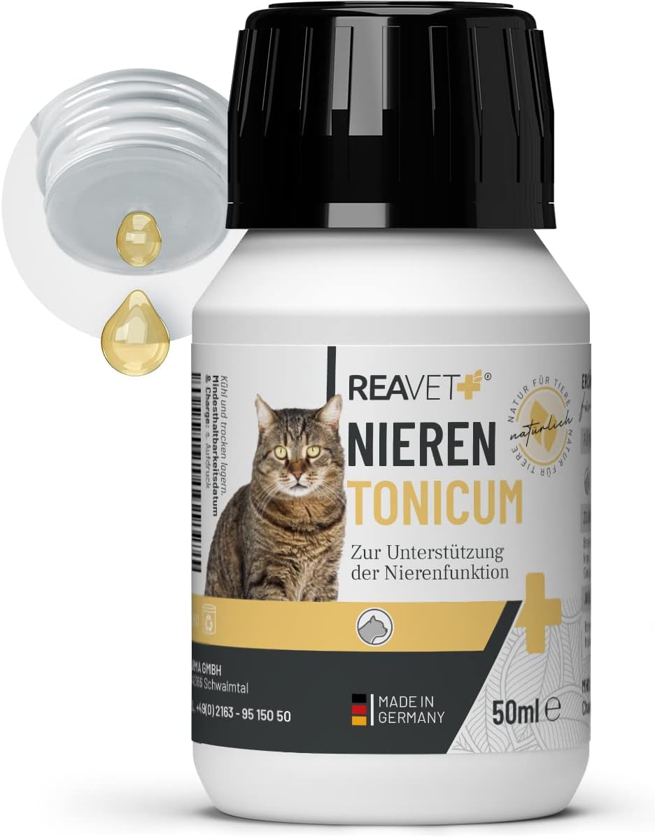 Gesunde Nieren sind für Katzen lebenswichtig – sie filtern Schadstoffe, regulieren den Wasserhaushalt und unterstützen den gesamten Stoffwechsel. Gerade ältere Katzen oder Tiere mit sensiblen Nieren benötigen eine gezielte Unterstützung. Das ReaVET Nieren Tonicum wurde entwickelt, um die natürliche Nierenfunktion und Harnwege Ihrer Katze sanft zu fördern – 100 % pflanzlich, ohne künstliche Zusätze und mit bester Akzeptanz.