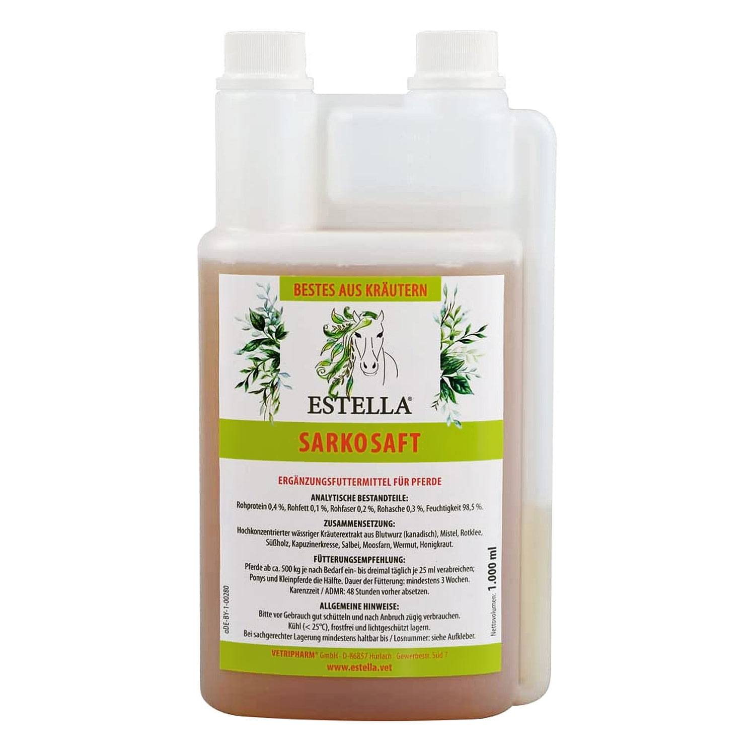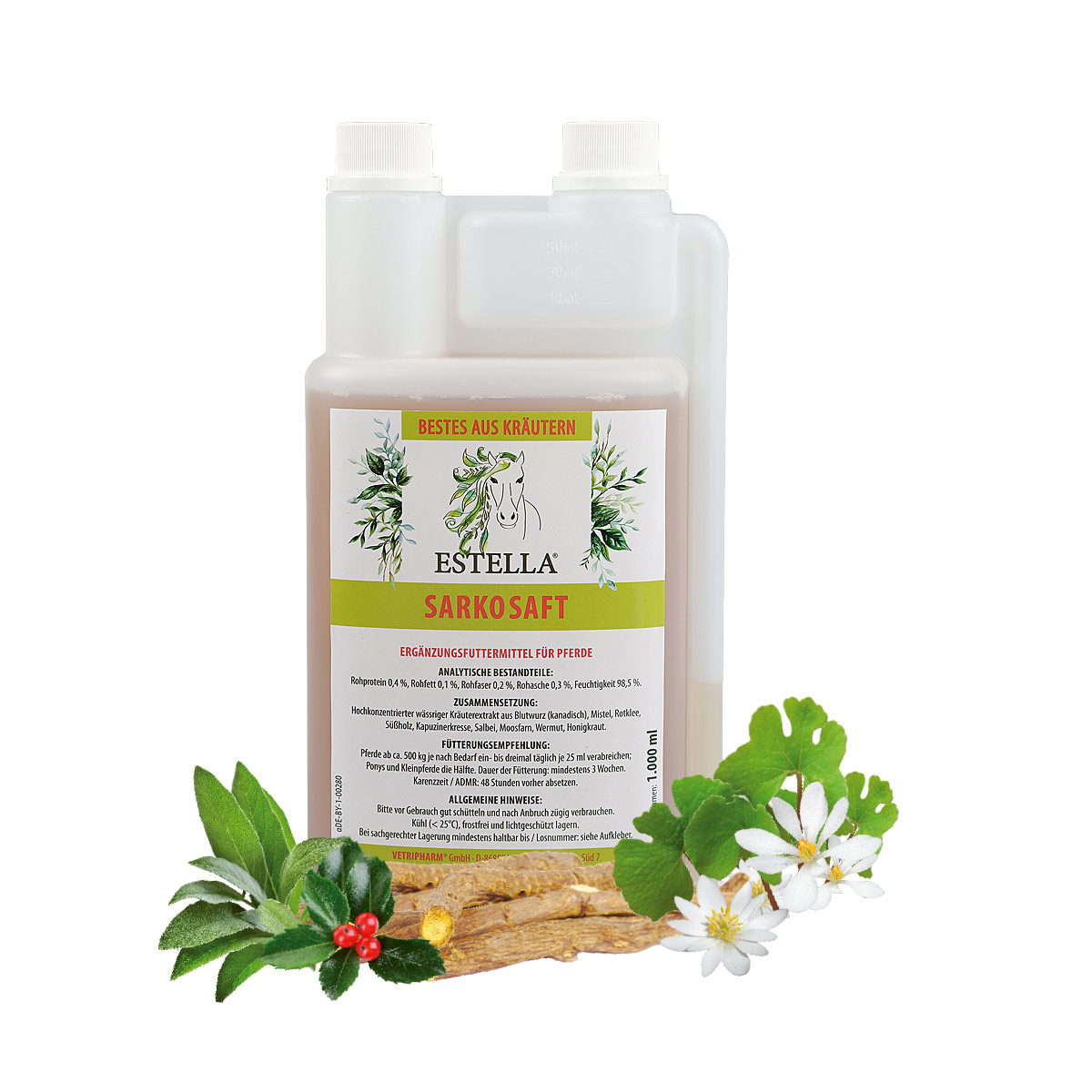ESTELLA – Sarkosaft ist ein hochwertiges Ergänzungsfuttermittel für Pferde, das speziell zur Unterstützung der Hautgesundheit und zur Stärkung der natürlichen Abwehrkräfte entwickelt wurde. Der konzentrierte Kräutersaft kombiniert wertvolle Inhaltsstoffe wie kanadische Blutwurz, Mistel, Rotklee, Moosfarn und Salbei, die den Hautstoffwechsel optimieren und eine gesunde Hautflora fördern.